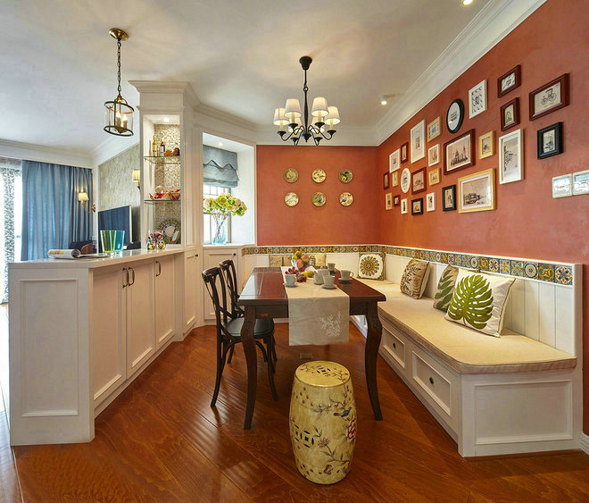 | 案例說明 | 本案是簡美風(fēng),在色彩的處理上比較大膽,讓眾多顏色能和諧相處。每一個空間的顏色富于變換多樣,色彩在空間分布上、前后位置關(guān)系十分的注意,有主又次,不喧賓奪主。濃郁的色調(diào)使家居空間溫馨而醇厚,更具生活氣息,絲毫沒有令人不適的壓迫感,在忙碌中坐下來,喝一杯咖啡,聊聊點滴生活,香濃回甘中享受安閑。 | ||