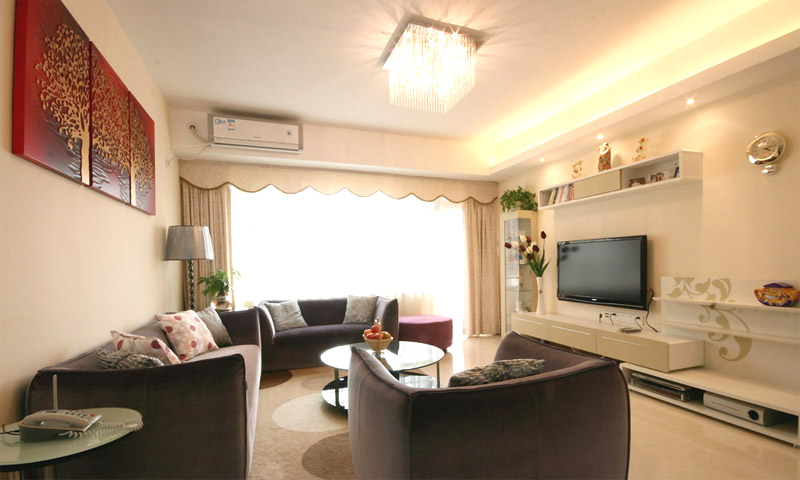 | 案例說明 | 本案重在綈造一個溫馨舒適的家,盡量利用空間,簡潔的色彩搭配來突出主題。主人喜歡白色簡約風(fēng)格,所以一切重點用軟裝材質(zhì)來點綴,空間顯得靈動,暗紫色的布藝沙發(fā),紅色的掛畫,黑色的餐桌,紅白間隔的椅子,在整個象牙白里面跳躍起來,讓空間生動舒服,這就是家的感覺,簡潔而不簡單。 | ||